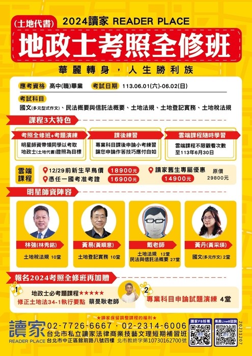 ▸符合趨勢,精準預測趨勢命題方向,以考取地政士(土地代書)國考證照為目標!!