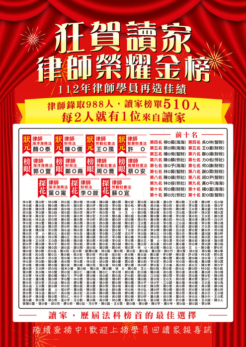 狂賀!! 112年律師榮耀金榜!!!