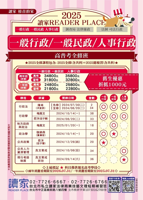•課程堂次:高考約145堂課;普考約125堂課(未含共同科目及總複習)