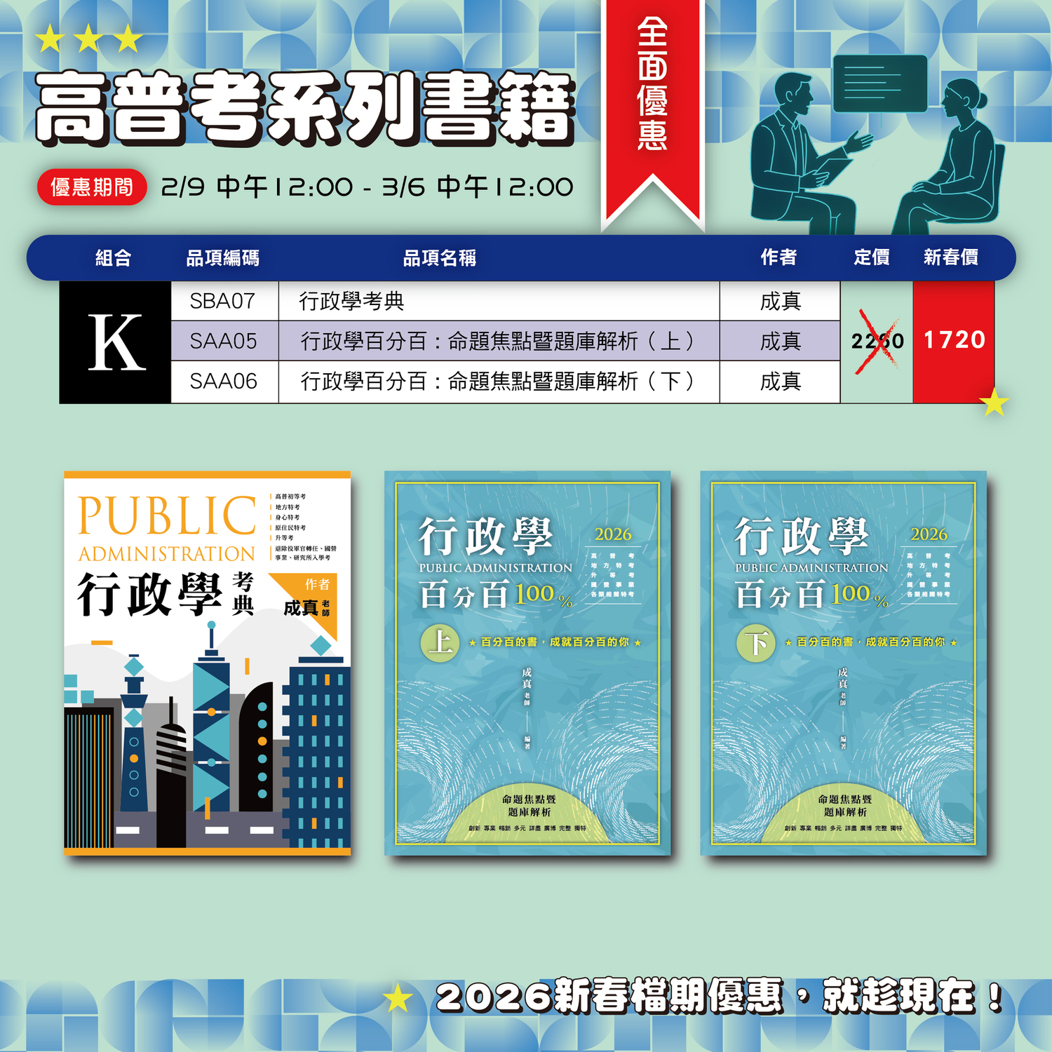 行政學百分百──命題焦點暨題庫解析(下) 定價NT$ :850