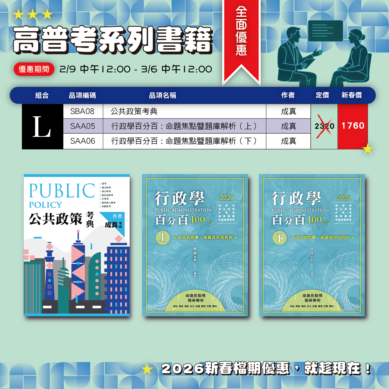行政學百分百──命題焦點暨題庫解析(下) 定價NT$ :850